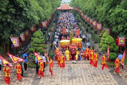 | Quang cảnh nghi thức diễu hành rước lễ Giỗ tổ Hùng Vương 2017 tại công viên Lịch sử - Văn hóa dân tộc Thành phố Hồ Chí Minh . Ảnh: An Hiếu - TTXVN |
