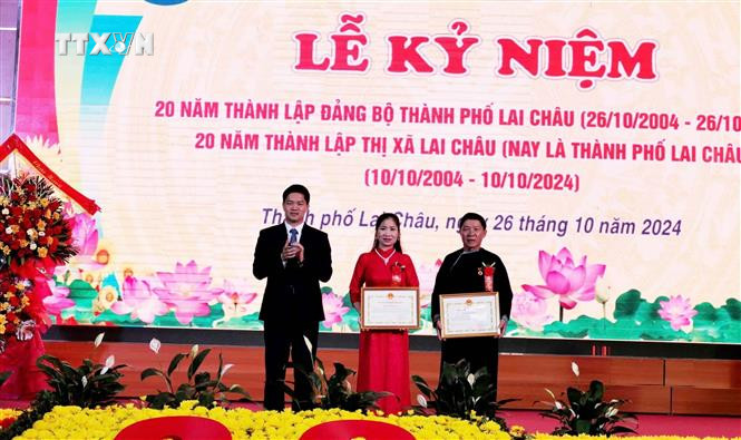 Dịp này, Chủ tịch UBND tỉnh Lai Châu tặng Bằng khen cho 2 tập thể, 6 hộ gia đình, 10 cá nhân có thành tích xuất sắc trong phong trào thi đua Kỷ niệm 20 năm thành lập Đảng bộ thành phố Lai Châu, 20 năm thành lập thành phố Lai Châu (2004-2024)./.