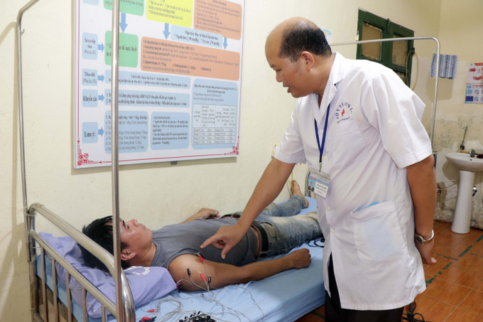 Bác sĩ Bệnh viện Đa khoa huyện Mường La, tỉnh Sơn La, khám bệnh cho bệnh nhân có thẻ bảo hiểm y tế. Ảnh: Hữu Quyết - TTXVN