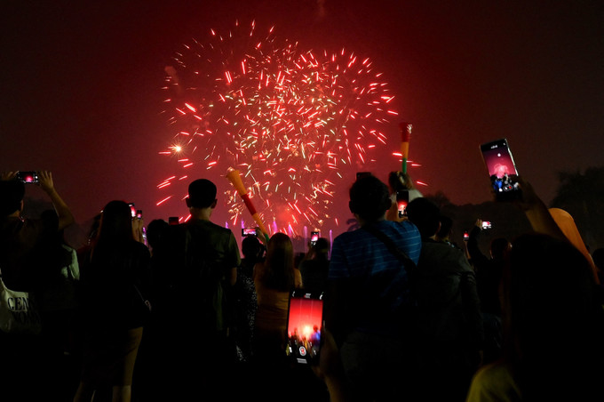 Người dân chiêm ngưỡng pháo hoa chào Năm mới tại Manila, Philippines, ngày 1/1/2024. Ảnh: AFP/TTXVN
