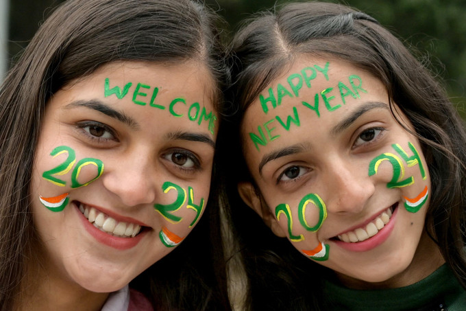 Thiếu nữ trang điểm chờ đón thời khắc giao thừa và Năm mới 2024 tại Amritsar, Ấn Độ ngày 31/12/2023. Ảnh: AFP/TTXVN