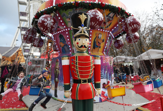 Trẻ em vui đùa tại Chợ Giáng sinh ở Paris, Pháp. Ảnh: THX/ TTXVN