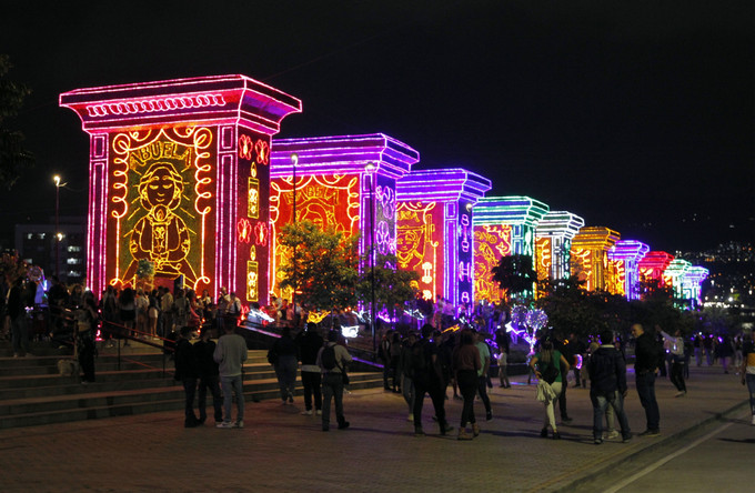 Đường phố được trang hoàng rực rỡ đón Giáng sinh tại Medellin, Colombia, ngày 8/12/2022. Ảnh: AFP/ TTXVN