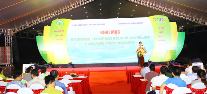 Phát biểu khai mạc, ông Nguyễn Ngọc Sơn, Phó Giám đốc Sở Nông nghiệp và Phát triển nông thôn Hà Nội cho biết, thời gian qua, Hà Nội đã quan tâm, tổ chức các sự kiện, hội chợ, hội thảo kết nối giao thương, trưng bày sản phẩm nhằm quảng bá, xúc tiến thương mại, qua đó sản phẩm nông sản an toàn, sản phẩm OCOP (Chương trình Mỗi xã một sản phẩm), sản phẩm làng nghề và các đặc sản vùng miền từng bước được người tiêu dùng nhận diện, đánh giá cao về chất lượng, mẫu mã bao bì, phong phú về chủng loại, đảm bảo an toàn vệ sinh thực phẩm.