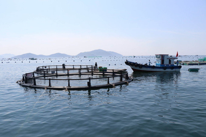 Mô hình nuôi biển công nghệ cao tại vùng biển hở xã Cam Lập, thành phố Cam Ranh với 10 hộ dân tiên phong. Ảnh: Đặng Tuấn –TTXVN