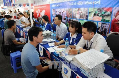 | Tư vấn hướng nghiệp cho học sinh, phụ huynh. Ảnh: An Hiếu - TTXVN |