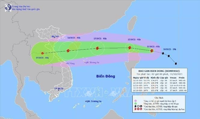 Theo Trung tâm Dự báo Khí tượng Thủy văn Quốc gia, đêm 11/10, bão Kompasu đã đi vào Biển Đông, trở thành cơn bão số 8.