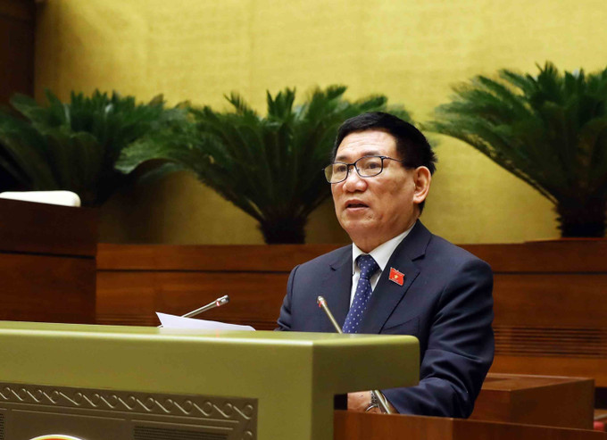 Bộ trưởng Bộ Tài chính Hồ Đức Phớc trình bày tại hội trường Tờ trình về việc bổ sung Kế hoạch đầu tư công trung hạn vốn ngân sách trung ương giai đoạn 2021-2025 từ nguồn dự phòng chung tương ứng với nguồn tăng thu ngân sách trung ương năm 2022 cho các nhiệm vụ, dự án đầu tư công và bổ sung Kế hoạch đầu tư công trung hạn cho Tập đoàn điện lực Việt Nam từ nguồn dự phòng của Kế hoạch đầu tư công trung hạn. Ảnh: An Đăng - TTXVN