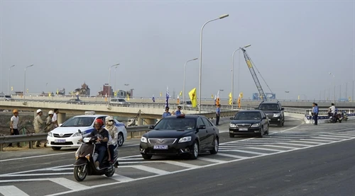 | Lễ thông xe nút giao cầu Thanh Trì với Quốc lộ 5. Ảnh: TTXVN |