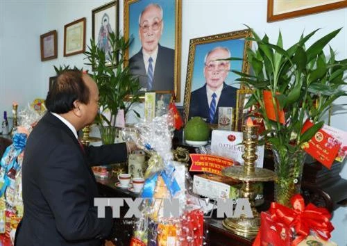| Nhân dịp đón Tết Cổ truyền Mậu Tuất 2018, ngày 10/2/2018, tại Thành phố Hồ Chí Minh, Thủ tướng Nguyễn Xuân Phúc đến thăm Nhà tưởng niệm và dâng hương Luật sư Nguyễn Hữu Thọ, nguyên Quyền Chủ tịch nước CHXHCN Việt Nam. Ảnh: Thống Nhất –TTXVN |