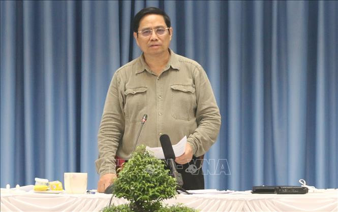 Thủ tướng Phạm Minh Chính phát biểu chỉ đạo tại buổi làm việc. Ảnh: Công Phong - TTXVN