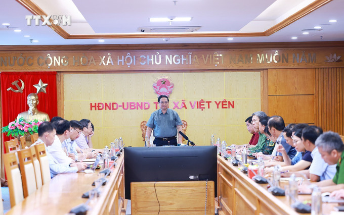 Sau khi nghe lãnh đạo tỉnh Bắc Giang báo cáo tình hình lũ lụt và hậu quả do mưa lũ ở tỉnh, Thủ tướng chuyển lời thăm hỏi, chia sẻ của Tổng Bí thư, Chủ tịch nước Tô Lâm và các đồng chí lãnh đạo Đảng, Nhà nước đến thân nhân các gia đình người bị nạn, những khó khăn, mất mát của nhân dân vùng bị ảnh hưởng của bão, mưa lũ; đồng thời biểu dương các cấp ủy Đảng, chính quyền và nhân dân tỉnh Bắc Giang đã chủ động phòng, chống, ứng phó với bão lụt, giảm thiểu thiệt hại tới mức thấp nhất.