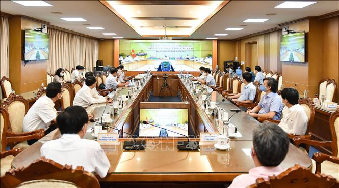 Điểm cầu Bộ Giáo dục và Đào tạo trong chương trình phát động. Ảnh: Thanh Tùng - TTXVN