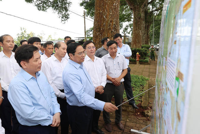 Thủ tướng Phạm Minh Chính khảo sát đoạn tuyến đường giao thông Khánh Hoà - Buôn Ma Thuột với Đại lộ Đông Tây. Ảnh: Dương Giang – TTXVN