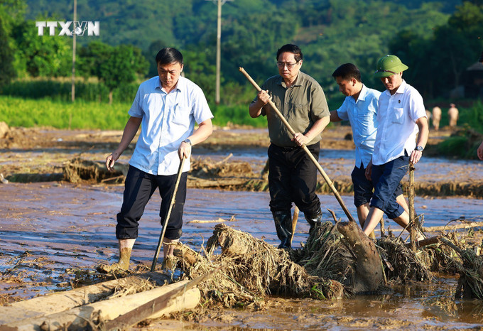 Sau khi thị sát, chỉ đạo công tác khắc phục hậu quả bão lũ ở tỉnh Yên Bái, chiều 12/9, Thủ tướng Chính phủ Phạm Minh Chính đã tới thôn Làng Nủ, xã Phúc Khánh, huyện Bảo Yên, tỉnh Lào Cai - nơi sạt lở vùi lấp 37 hộ, khiến 95 người chết và mất tích để thị sát, trực tiếp chỉ đạo công tác tìm kiếm, cứu hộ, cứu nạn các nạn nhân và thăm hỏi, động viên nhân dân, gia đình nạn nhân.