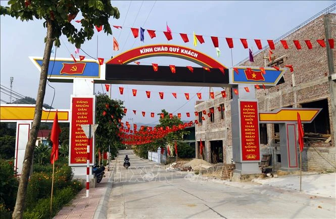 Xã Thái Bình, huyên Yên Sơn đón nhận quyết định công nhân đạt chuẩn nông thôn mới nâng cao. Ảnh: Vũ Quang – TTXVN