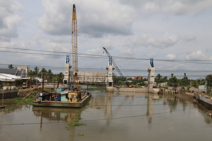 Ngay từ cuối tháng 8/2022, Tiền Giang triển khai thi công 4 cống đập ngăn mặn, trữ ngọt cặp theo bờ bắc sông Tiền gồm: Cái Sơn, Mù U, Hai Tân, Cây Cồng trên đường tỉnh 864 với tổng vốn đầu tư khoảng 864 tỷ đồng.