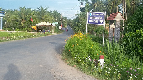 Tuyến đường xanh - sạch - đẹp tại Huyện lộ 23B được Hội Phụ nữ xã Hòa Định (huyện Chợ Gạo, tỉnh Tiền Giang) vận động hội viên phụ nữ trồng hoa. Ảnh: tiengiang.gov.vn