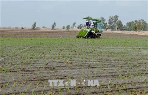 Giao sạ lúa theo kế hoạch để đạt sản lượng cao. Ảnh: Trường Giang, TTXVN