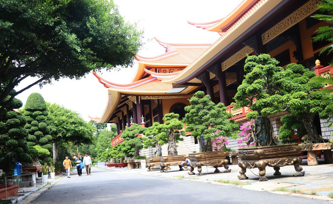 Khách du lịch tham quan thiền viện Trúc Lâm Chánh Giác. Ảnh: Nam Thái - TTXVN