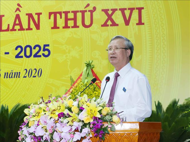 Đồng chí Trần Quốc Vượng, Uỷ viên Bộ Chính trị, Thường trực Ban Bí thư với các đại biểu dự đại hội. Ảnh: Phương Hoa – TTXVN