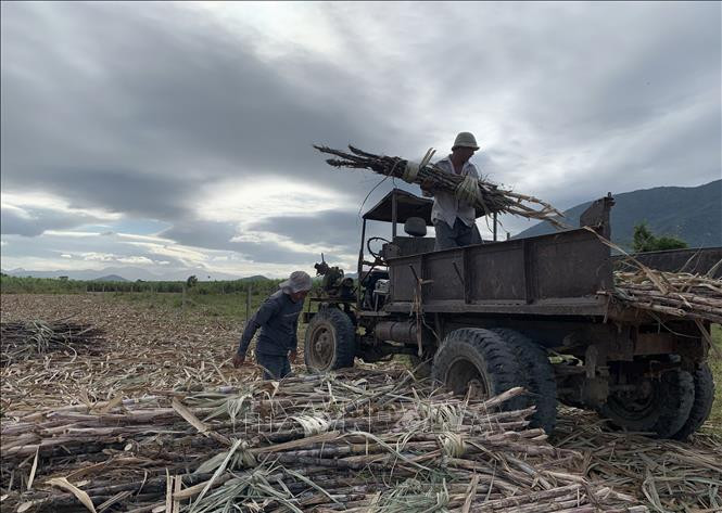 Nông dân trồng mía ở vùng mía Ninh Hòa tất bật vào vụ thu hoạch. Ảnh: Phan Sáu - TTXVN
