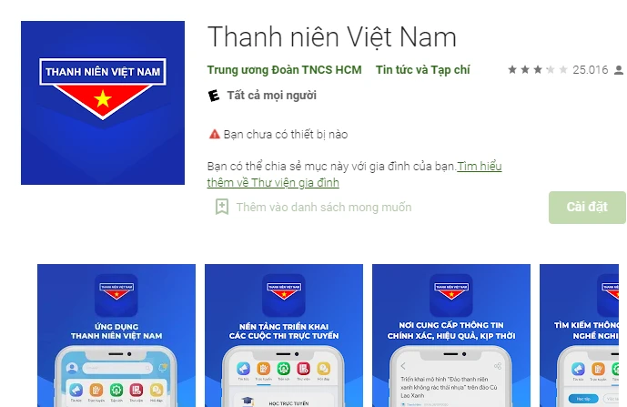 App Thanh niên Việt Nam. Ảnh: DTMN