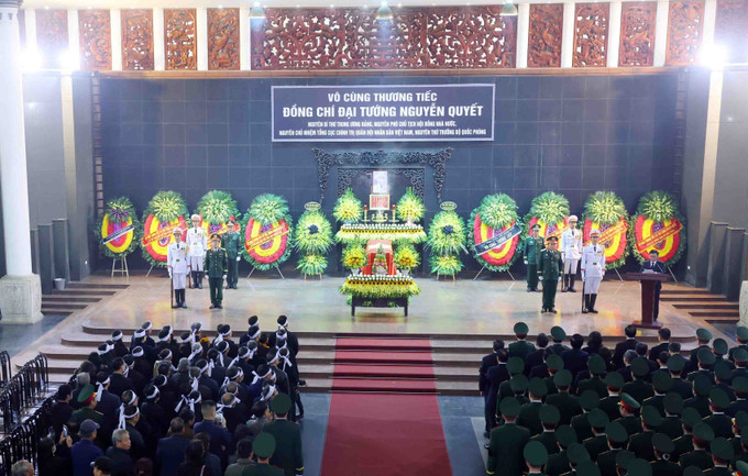 Sáng 27/12, tại Nhà tang lễ Quốc gia (số 5 Trần Thánh Tông, thành phố Hà Nội), Ban Chấp hành Trung ương Đảng Cộng sản Việt Nam, Quốc hội, Chủ tịch nước, Chính phủ, Ủy ban Trung ương Mặt trận Tổ quốc Việt Nam và gia đình đã tổ chức trọng thể Lễ viếng, Lễ truy điệu Đại tướng Nguyễn Quyết, nguyên Bí thư Trung ương Đảng, nguyên Phó Chủ tịch Hội đồng Nhà nước, nguyên Chủ nhiệm Tổng cục Chính trị Quân đội nhân dân Việt Nam, nguyên Thứ trưởng Bộ Quốc phòng, theo nghi thức Lễ tang cấp Nhà nước.
