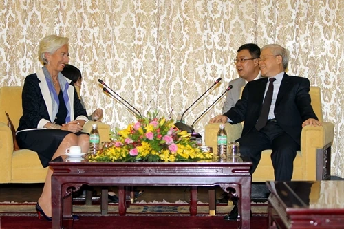 Về quan hệ giữa Việt Nam với IMF thời gian tới, Tổng Bí thư Nguyễn Phú Trọng mong muốn IMF tiếp tục đồng hành và tích cực hỗ trợ Việt Nam trong quá trình phát triển kinh tế - xã hội . Tổng Giám đốc Cờ-rít-xtin La-gát khẳng định IMF sẽ tiếp tục ủng hộ mạnh mẽ và tăng cường cung cấp các hỗ trợ, tư vấn cần thiết cho Việt Nam, nhất là hỗ trợ kỹ thuật và tư vấn chính sách, củng cố tài khóa, bảo đảm an toàn nợ công, tăng cường năng lực quản lý kinh tế vĩ mô và hệ thống tài chính-ngân hàng hỗ trợ tăng trưởng bền vững./.