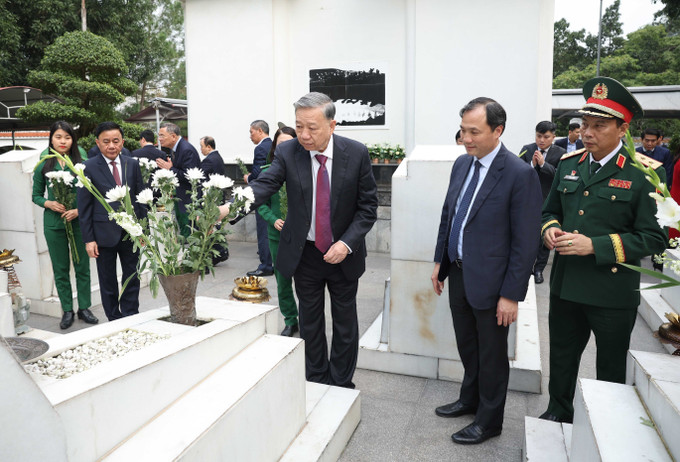 Trước anh linh các anh hùng liệt sỹ, Tổng Bí thư Tô Lâm và Đoàn công tác kính cẩn nghiêng mình, bày tỏ lòng biết ơn vô hạn đối với công lao to lớn của các thế hệ cha anh vì sự nghiệp đấu tranh giải phóng dân tộc và thống nhất đất nước.