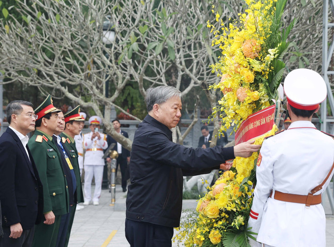 Trong chuyến công tác tại Hà Giang, nhân kỷ niệm 95 năm Ngày thành lập Đảng Cộng sản Việt Nam (3/2/1930 - 3/2/2025), với đạo lý "Uống nước nhớ nguồn", chiều 5/2, Tổng Bí thư Tô Lâm cùng Đoàn công tác Trung ương đã tới dâng hoa, dâng hương tưởng nhớ và tri ân các Anh hùng liệt sỹ đã anh dũng hy sinh vì độc lập tự do của dân tộc, vì hạnh phúc của nhân dân tại Nghĩa trang liệt sỹ quốc gia Vị Xuyên (Hà Giang).