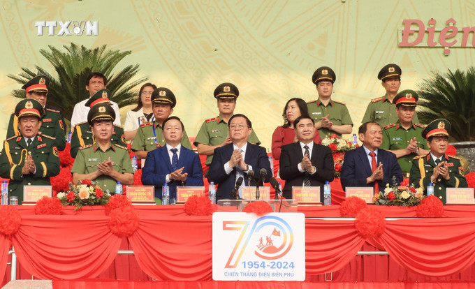 Bí thư Trung ương Đảng, Trưởng ban Tuyên giáo Trung ương, Phó Trưởng ban Thường trực Ban Chỉ đạo Trung ương kỷ niệm các ngày lễ lớn và sự kiện lịch sử quan trọng của đất nước Nguyễn Trọng Nghĩa; Phó Thủ tướng Chính phủ Trần Hồng Hà, cùng lãnh đạo các bộ, ngành Trung ương và tỉnh Điện Biên dự lễ tổng duyệt.