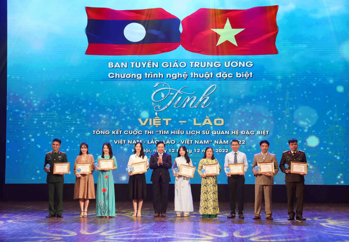 Tối 12/12, Ban Tuyên giáo Trung ương tổ chức Chương trình nghệ thuật đặc biệt “Tình Việt - Lào”, tổng kết Cuộc thi “Tìm hiểu lịch sử quan hệ đặc biệt Việt Nam - Lào, Lào - Việt Nam” năm 2022.