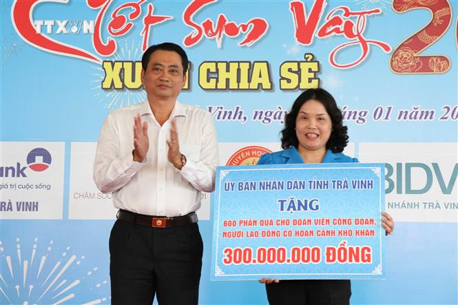 Tại Chương trình, UBND tỉnh Trà Vinh trao 600 phần quà (500.000 đồng/phần) cho công nhân, người lao động. Công ty Xổ số Kiến thiết tỉnh Trà Vinh trao tặng 3 căn nhà “Mái ấm công đoàn”, mỗi căn trị giá 50 triệu đồng cho công đoàn viên khó khăn về nhà ở.