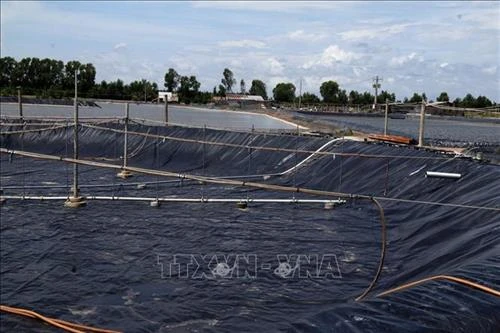 | Nuôi tôm sạch theo mô hình lót bạt đáy cho thu nhập cao. Ảnh: Lê Văn Sen - TTXVN |