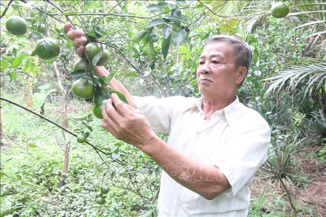 Ông Nguyễn Văn Chừa, thành viên Hợp tác xã Quýt đường Thuận Phú có vườn quýt đường 0,4 ha. Ảnh: Thanh Hòa- TTXVN