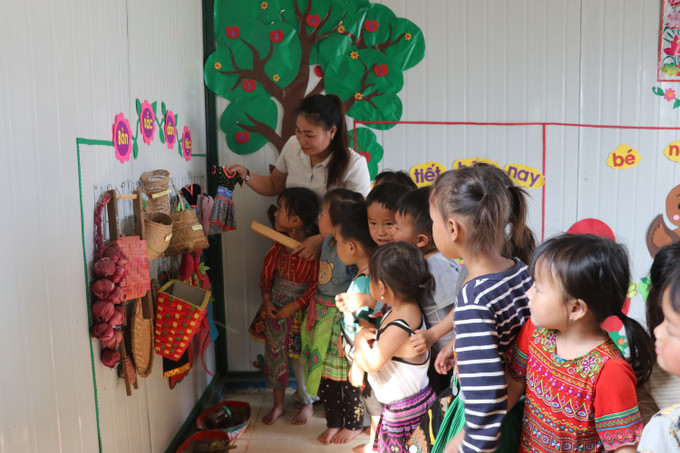 Các cháu học sinh người Mông ở bản Cu Vai, xã Xà Hồ, huyện Trạm Tấu được học tập ngay tại bản của mình. Ảnh: Việt Dũng-TTXVN