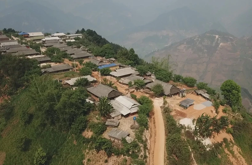 Bản Cu Vai, xã Xà Hồ, huyện Trạm Tấu nằm biệt lập trên đỉnh núi cao, là điểm tái định cư của gần 50 hộ đồng bào dân tộc Mông. Ảnh: Việt Dũng-TTXVN