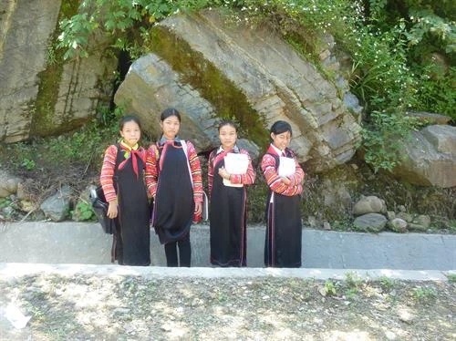 Một số gia đình có điều kiện đeo cho trẻ vòng cổ hoặc vòng tay với mục đích chính là để trừ tà mà, kị gió chứ không phải để làm đẹp. Sau này khi trẻ lớn khoảng 8 - 10 tuổi mới có y phục riêng. Trang phục của trẻ em hoàn toàn giống trang phục của người lớn, điểm khác duy nhất là kiểu cắt may đơn giản hơn, trang trí hoa văn không cầu kỳ như trang phục người lớn.