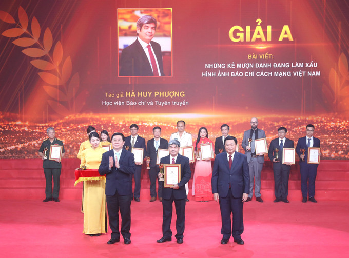 Tác giả Hà Huy Phượng (Học viện Báo chí và Tuyên truyền) nhận giải A. Ảnh: Phương Hoa – TTXVN