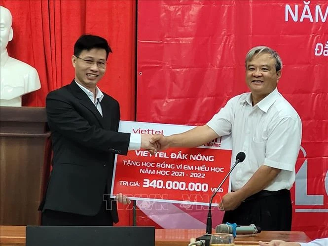 170 em học sinh của 17 xã thuộc diện đặc biệt khó khăn (theo Quyết định số 861/QD-TTg ngày 04/6/2021 của Thủ tướng Chính phủ phê duyệt các xã khu vực III, khu vực II, khu vực I thuộc vùng đồng bào dân tộc thiểu số và miền núi giai đoạn 2021 - 2025) được nhận mỗi em một suất học bổng trị giá 2 triệu đồng. Theo Viettel Đắk Nông, chương trình học bổng “Vì em hiếu học” được triển khai trên địa bàn tỉnh từ năm học 2014 - 2015. Đến nay, Viettel Đắk Nông đã phối hợp với các đơn vị liên quan của tỉnh trao gần 1.800 suất học bổng thuộc chương trình này với tổng kinh phí gần 1,8 tỷ đồng.