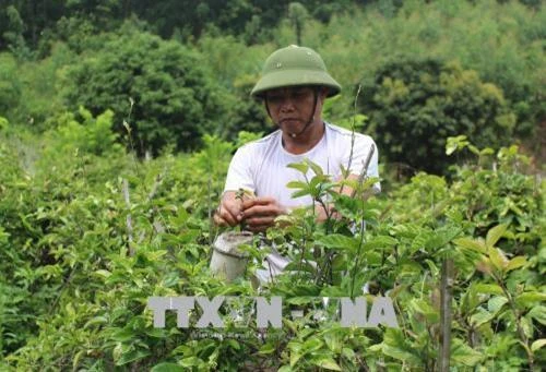 | Mô hình trồng Ba kích thương phẩm tại gia đình anh Nguyễn Văn Sô ở thôn Đồng Giếng, xã Đạo Trù (Tam Đảo, Vĩnh Phúc). Ảnh: Nguyễn Thảo - TTXVN |