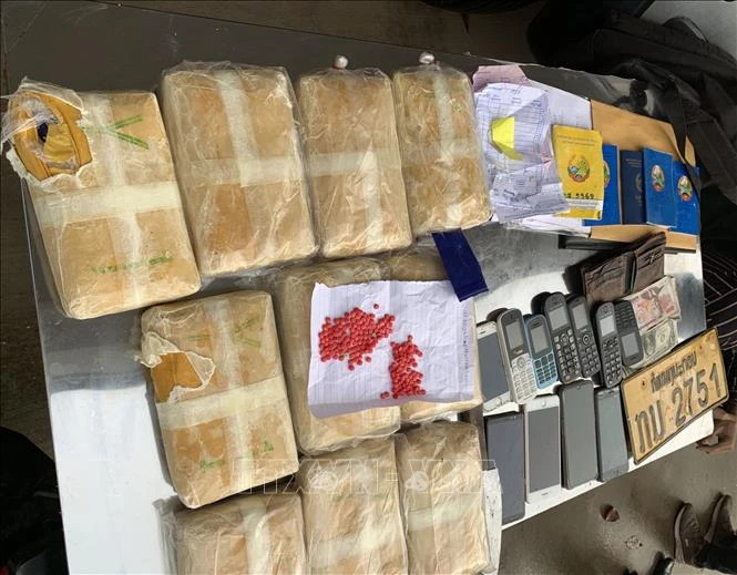 Tang vật ma túy tổng hợp thu được từ giai đoạn 2 của "Chuyên án QT 620L". Ảnh: TTXVN phát
