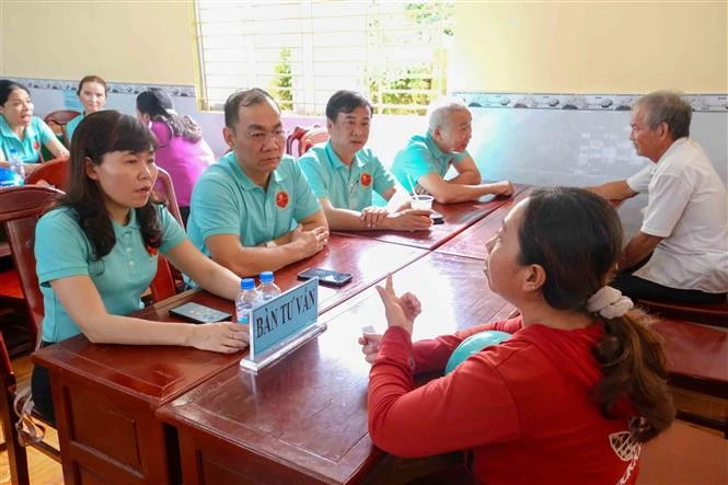 Các luật sư, chuyên gia tư vấn pháp lý cho người dân huyện Thới Lai. Ảnh: Thanh Liêm - TTXVN