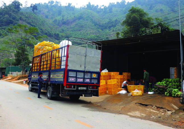 Thương lái đang thu mua chuối ở xã Kiến Thiết, huyện Yên Sơn (Tuyên Quang) để xuất khẩu Trung Quốc. Ảnh: Vũ Quang Đán - DTMN