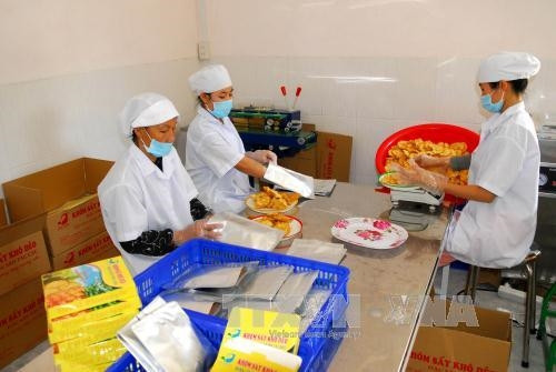 | Cơ sở sản xuất khóm của Công ty TNHH Hữu Hạn Phát Vũ Đạt, ấp An Ninh, xã Bình An, huyện Châu Thành chuyên sản xuất khóm khô sấy dẻo, mứt khóm…đảm bảo vệ sinh an toàn thực phẩm. Bình quân 1 tháng cung ứng ra thị trường tới các siêu thị từ 700 – 1 tấn khóm (dứa) khô sấy dẻo. Ảnh: Mạnh Linh-TTXVN |