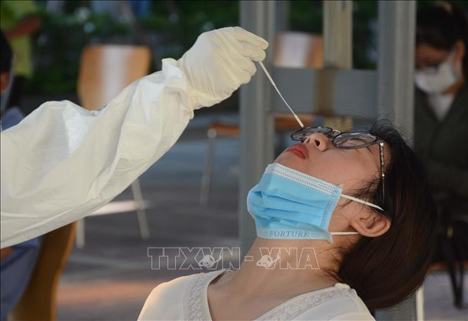 Lấy mẫu xét nghiệm SARS-CoV-2 cho người lao động làm việc tại Khu công nghiệp An Đồn (Đà Nẵng). Ảnh: Văn Dũng-TTXVN