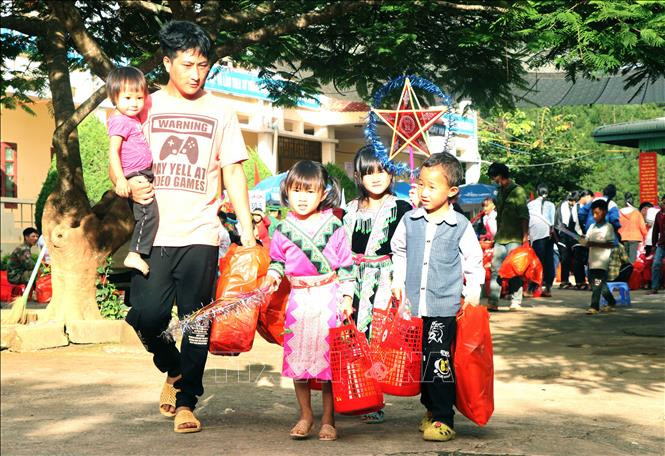 Trẻ em hào hứng khi được tặng quà Trung thu. Ảnh: Đức Hạnh - TTXVN