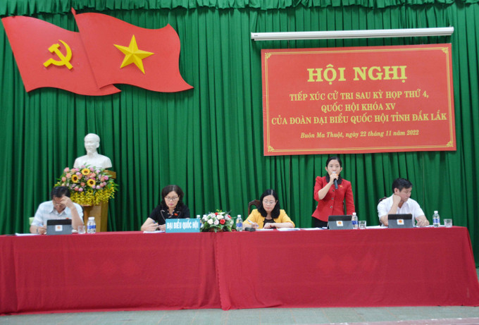 Tại các buổi tiếp xúc, Đoàn đại biểu Quốc hội tỉnh đã thông báo kết quả Kỳ họp thứ 4, Quốc hội khóa XV đến cử tri. Theo đó, sau 21 ngày làm việc tích cực (từ 20/10-15/11), khẩn trương, dân chủ và trách nhiệm cao, Kỳ họp đã hoàn thành nội dung, chương trình đề ra. Quốc hội đã thông qua 6 luật, 14 nghị quyết, trong đó bao gồm Nghị quyết về thí điểm một số cơ chế, chính sách đặc thù phát triển thành phố Buôn Ma Thuột; cho ý kiến về việc tiếp thu, chỉnh lý 1 dự án luật; cho ý kiến lần đầu đối với 7 dự án luật khác; tiến hành giám sát chuyên đề; thực hiện chất vấn và trả lời chất vấn; xem xét, quyết định các vấn đề kinh tế-xã hội, ngân sách Nhà nước, nhân sự và nhiều nội dung quan trọng khác.