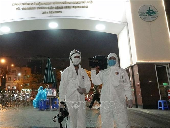 Phóng viên TTXVN tác nghiệp tại các khu vực phong tỏa phòng chống dịch COVID-19. Ảnh: TTXVN